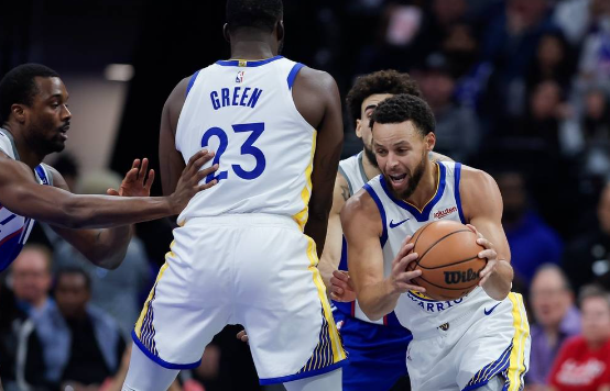 勇士隊(duì)首發(fā):安德魯-維金斯、斯蒂芬-庫(kù)里、克萊-湯普森、德雷蒙德-格林、凱文-盧尼