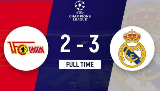 歐冠C組第6輪,皇馬客場對陣柏林聯(lián)合。上半場,凱帕神撲救險(xiǎn),何塞盧頭球攻門中框彈出,莫德里奇失點(diǎn),弗蘭德讀秒破門。易邊再戰(zhàn),何塞盧頭球雙響幫助皇馬反超比分,卡拉爾遠(yuǎn)射破門,塞巴略斯絕殺。最終皇馬3-2柏林聯(lián)合。積分榜方面,皇馬六戰(zhàn)全勝頭名出線,柏林聯(lián)6戰(zhàn)2分墊底。